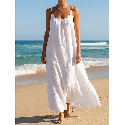 Per donna Abito maxi Abito a Tubino Vestito Estivo Abiti in cotone e lino Vestito Casual Elegante Essenziale Moderno All'aperto Vacanza Ferie Vestibilità comoda Colore Puro Senza Maniche Girocollo
