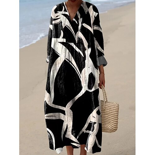 Per donna Abito lungo maxi Vestito a caftano Abito Bianco Abiti in cotone e lino Vestito Casual Essenziale Moderno Quotidiano Weekend Vestibilità comoda Semplice Manica Lunga Girocollo Nero Bianco