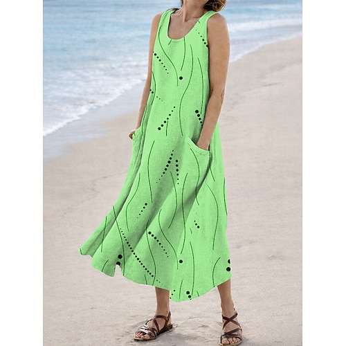 Per donna Abito Midi Vestito Estivo Abito a trapezio Vacanza Casual Boho Spiaggia Ferie Vestibilità comoda Grafico Geometrico Senza Maniche Scollo a V Scollo Tondo Blu Bianco Viola Verde Estate