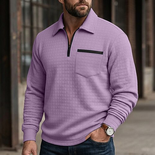 Per uomo Magliette Polo a Nido d'Ape Testurizzato Casuale Sport Outdoor Zip a un quarto Manica Lunga Moda Confortevole Con zip Tasca Autunno Primavera Autunno Interstagionale Vestibilità comoda