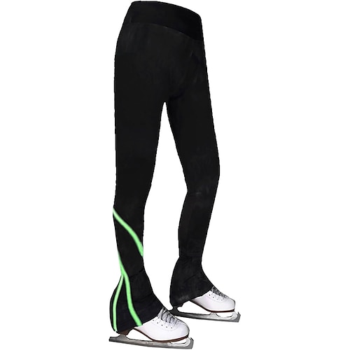 pantaloni da pattinaggio artistico da donna e da ragazza, pantaloni da pattinaggio sul ghiaccio, neri, elasticizzati, abbigliamento da pattinaggio per gare di allenamento, termici, caldi, con
