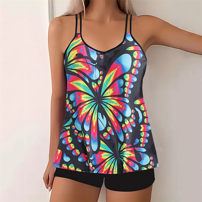 Women's Tankini Two Piece Swimsuit Racerback Swimwear Swimwear Yellow Blue Breathable Quick Dry Lightweight Sleeveless - Swimming Surfing Beach Summer Spring