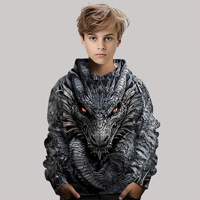 Boys' 3D Dragon Hoodie Long Sleeve Spring Fall Fashion Streetwear Kids 4-12 Years Hooded Outdoor Casual Daily Regular Fit