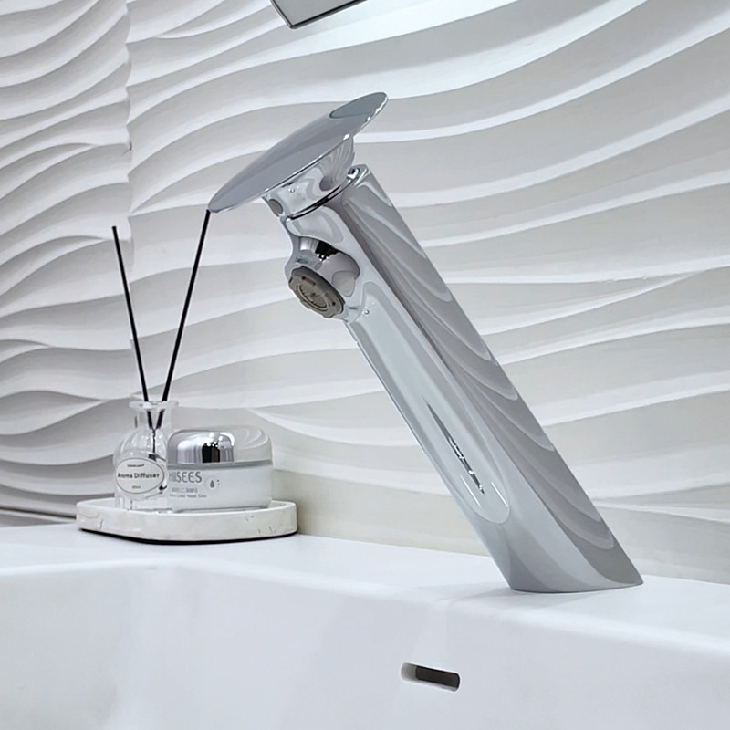 Bathroom Sink Faucet, Brass Waterfall Single Handle One Hole Modern Style Bath Taps with Hot and Cold Water