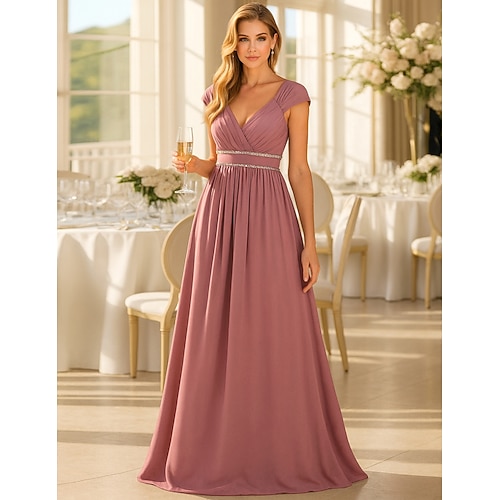 Abiti formali a linea A di lunghezza fino al pavimento Abito da sera Abito per la madre della sposa senza maniche scollatura a V elegante da festa con pieghe e perline