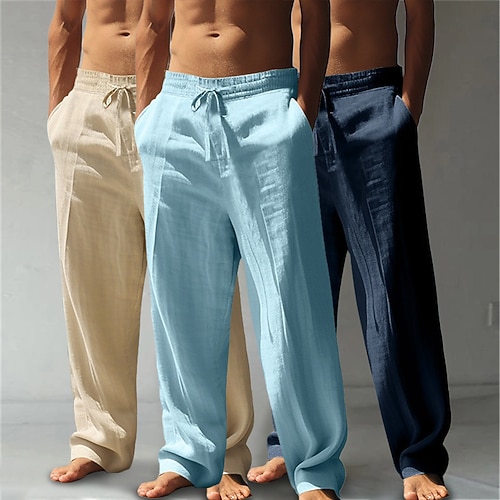 Per uomo Pantaloni di Lino Pantaloni Pantaloni Eleganti Pantaloni Estivi Tasca Gamba Dritta Semplice Comodità Traspirante Lunghezza intera All'aperto Affari Ricevimento di matrimonio Retrò Vintage