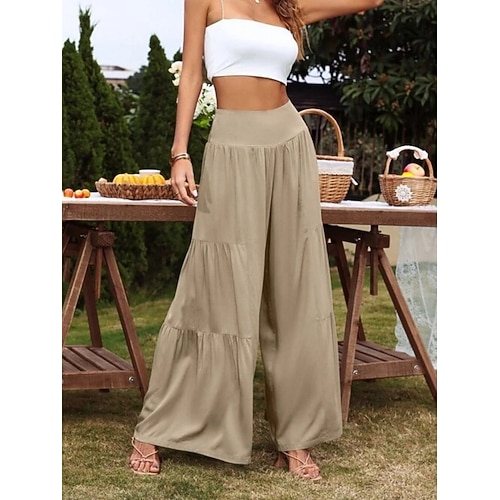 Per donna Gamba larga Pantaloni Eleganti Streetwear Casual Lunghezza intera Naturale Semplice Elastico in vita Confortevole All'aperto Vacanza Ferie Marrone rossastro Rosso violaceo Cenere Grigio