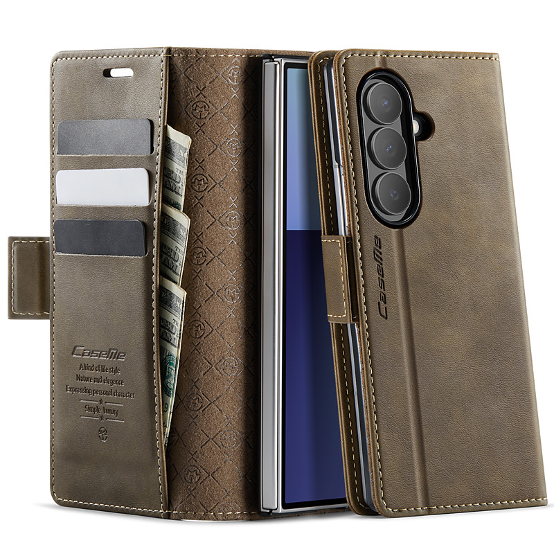 Handy Hülle Handyhüllen Für Samsung Galaxy Z Fold 7 Rückseite Ständer Kartenfach Stoßfest Retro TPU PU-Leder