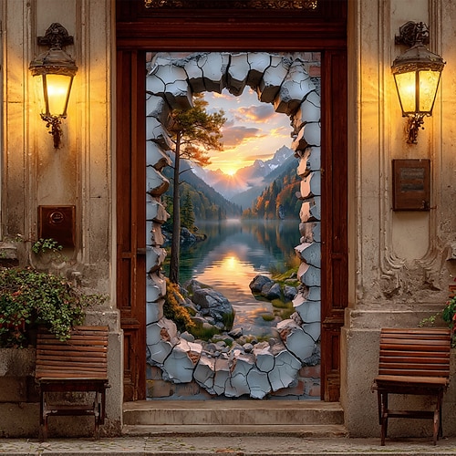 Poster Copertura della porta Banner per esterni Montagna Moderno 3D Dormitorio Stanza per adolescenti Dormitorio universitario Ragazzi Man Cave Frat Bedroom Sfondi di ripresa Porta d'ingresso