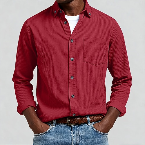 Per uomo Camicia Camicia button-down Camicia di Velluto a Coste Sopracamicia Blu Giallo Rosso Blu marino Verde Manica Lunga Semplice Bavero Casuale All'aperto Tasca Frontale Abbigliamento Moda