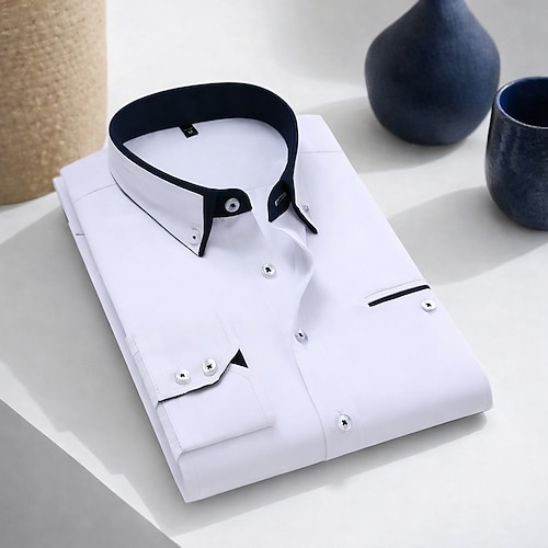 Per uomo Camicia Camicia elegante Camicia button-down Semplice Quotidiano Affari Blu chiaro Bianco Rosa Blu marino Manica Lunga Collo ripiegato Tutte le stagioni Abbigliamento Patchwork