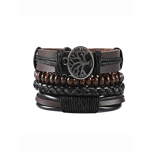 Set di braccialetti multistrato in vera pelle da uomo – bracciale con perline boho a forma di albero della vita, per occasioni casual, feste e viaggi