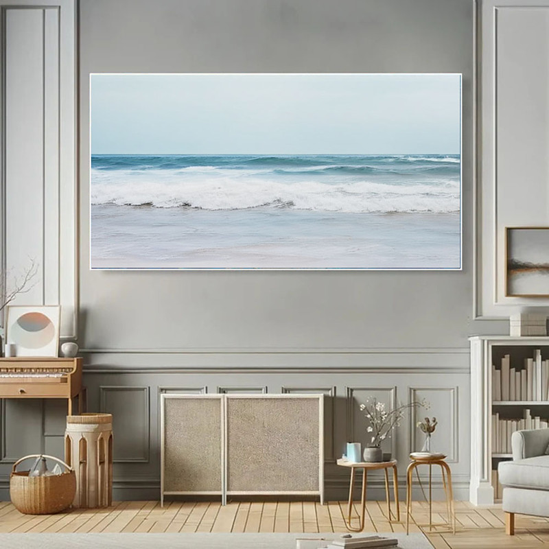 Large Original Sea Painting Blue and Grey Abstract Sea Painting Beach Landscape Abstract Painting Sky Painting Living Room Wall Art