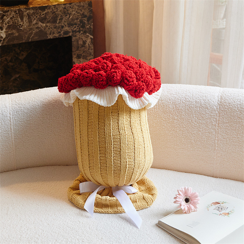 Valentine's Day Handheld Flower Bouquet Throw Pillow, Woven Floral Arrangement Decorative Cushion, Perfect Holiday Gift for Sofa, Bed, Living Room