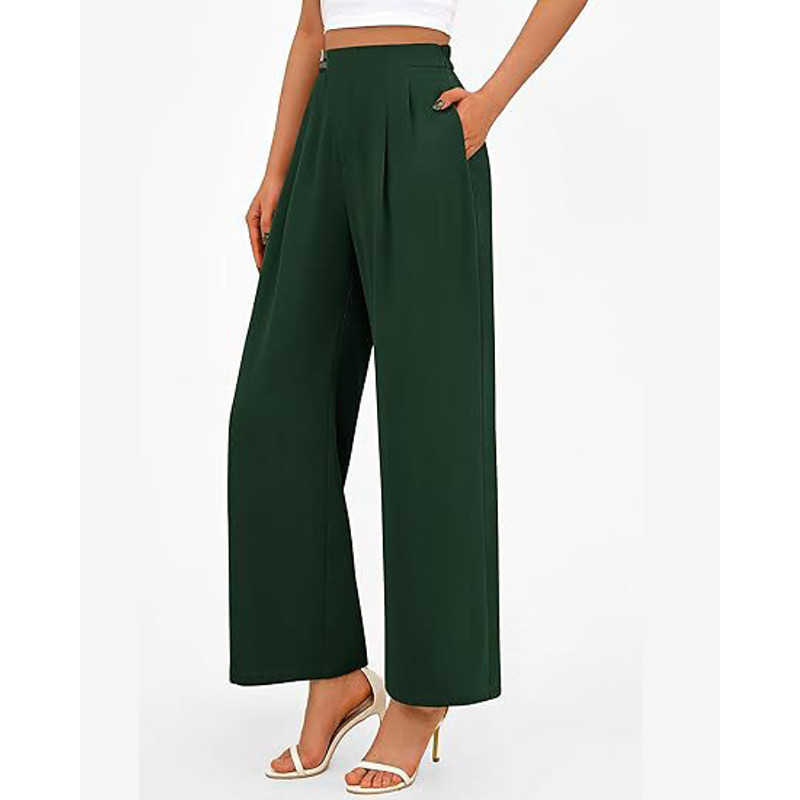Women's Wide Leg Dress Pants Fashion Streetwear Full Length Natural Plain Pocket Elastic Waist Comfortable Street Holiday Weekend Black White Light Green Fuchsia Fall Regular Fit