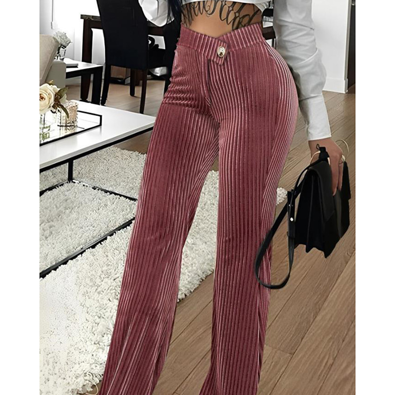 Women's Wide Leg Corduroy Pants Streetwear Stylish Full Length Natural Plain Elastic Waist Comfortable Street Holiday Weekend Rust Navy Black Green Fall Winter Regular Fit