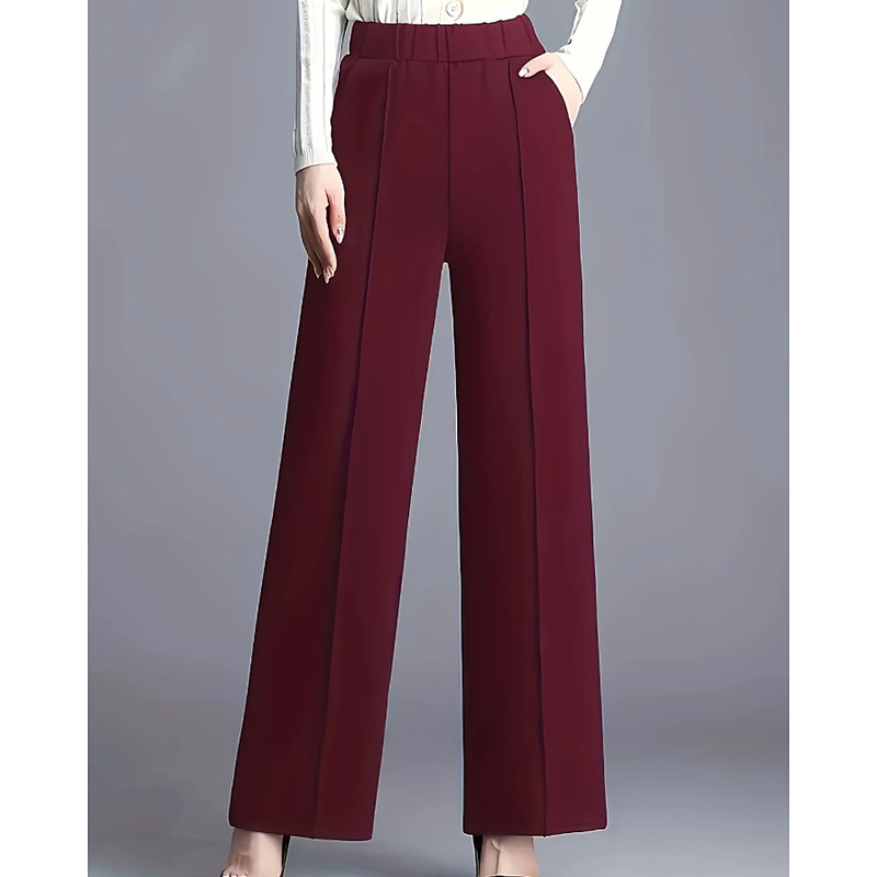 Women's Wide Leg Slacks Streetwear Casual Full Length Natural Plain Elastic Waist Outdoor Comfortable Vacation Going out claret Black White Blue Fall Regular Fit