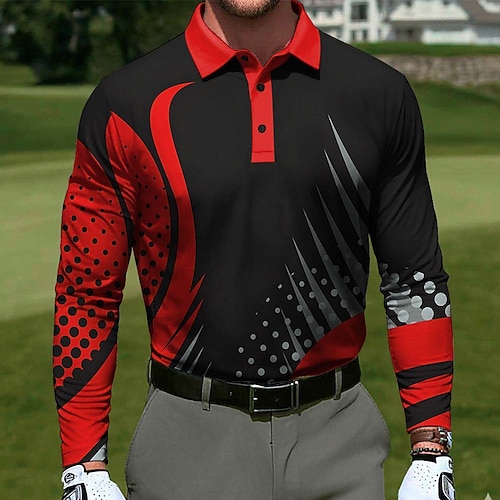 Per uomo Geometrico Golf Polo Sportivi Manica Lunga Magliette polo Bavero Casual All'aperto Athleisure Abbigliamento quotidiano Stampa 3D Bottoni Primavera Autunno Blu Giallo Rosso