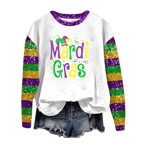 Print Mardi Gras 2026 T-shirt Sleeve T-shirt Graphic for Women's Adults' 3D Print for Carnival Mardi Gras Club Festival