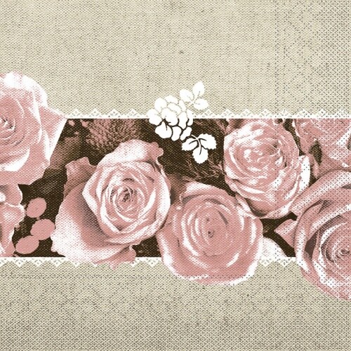 Mank Serviette aus Tissue, Lovely Roses in Rosa, 40 x 40 cm, 100 Stück - Rosen Blumen Floral