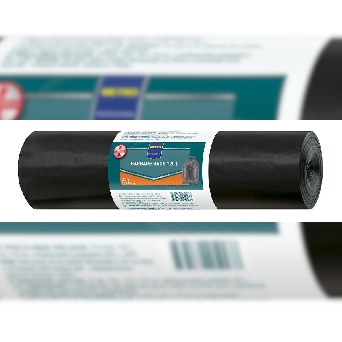 METRO PROFESSIONAL Müllsack, 70 x 110 cm, 120 L, mit Zugband, schwarz, 2 x 25 Stück, 2 Packungen