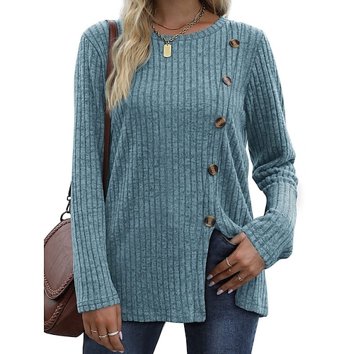 Per donna Blusa Tinta unica Elegante Casual Manica Lunga Girocollo Top Regolari Quotidiano Bottoni Nero Vino Verde militare Blu Reale Blu Primavera Autunno Inverno