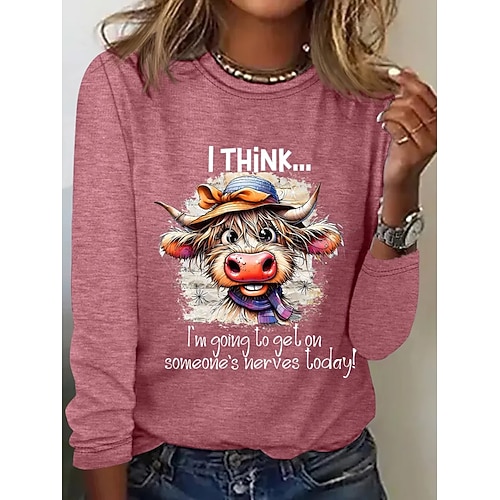 Per donna Maglietta Grafico Mucca Lettera Vintage Moda Elegante Manica Corta Manica Lunga Girocollo Top Regolari Quotidiano Weekend Stampato Nero Bianco Rosa Verde Estate Primavera Autunno