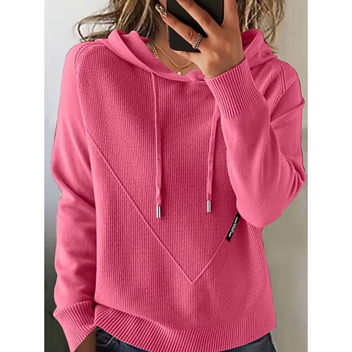 Per donna Felpa Casual Morbido Colore Puro A Coste Con Cappuccio Lavorato a maglia Manica Lunga Top Regolari Maglia Quotidiano All'aperto Weekend Blu Nero Autunno Inverno