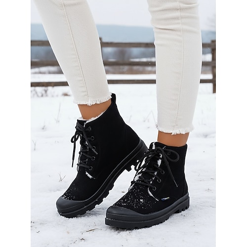 Damen-Winterstiefel in Weinrot mit Schnürung – warme, fleecegefütterte Stiefeletten, rutschfeste Outdoor-Schuhe für Weihnachten, Schnee und den Alltag