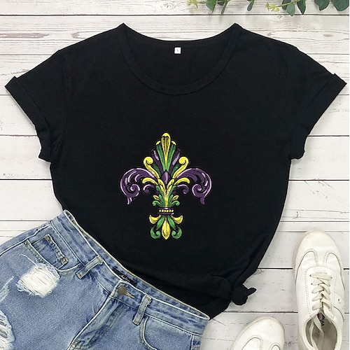 Per donna maglietta Cotone Stampa Carnevale Giornaliero Fine settimana Di tendenza Manica corta Rotonda Nero Primavera estate