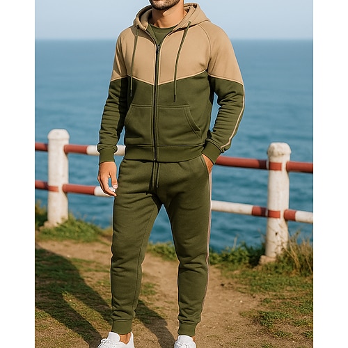 Per uomo Tuta da Ginnastica Tuta da Jogging Set di tute da ginnastica Con zip Con cappuccio Blocco di colori Completo Abbigliamento Autunno Inverno Nero Verde militare All'aperto Viaggio Sportivo