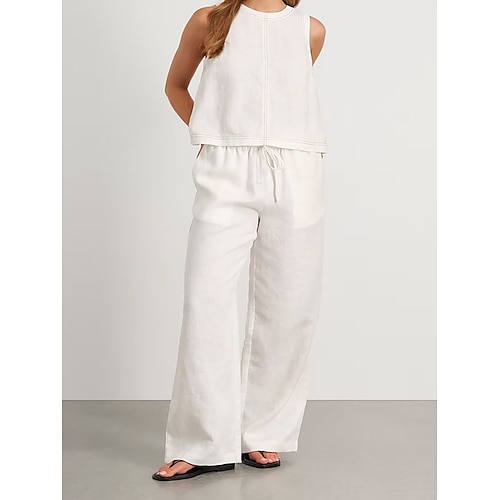 Per donna Set di biancheria in cotone Set di Pantaloni Bolero Top Senza Maniche Girocollo Semplice Arricciato Coulisse Moda Streetwear Casuale Quotidiano All'aperto Nero Bianco Estate Vestibilit