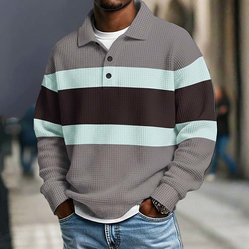 Per uomo A quadri Strisce orizzontali Polo Polo da rugby Testurizzato Manica Lunga Magliette polo Bavero Abbigliamento Sportivo Casual Scuola Athleisure Abbigliamento quotidiano Stampa 3D Primavera