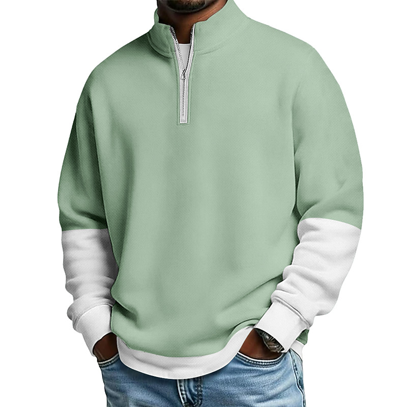 Men's Zip Polo Polo Shirt Outdoor Street Collar Quarter Zip Long Sleeve Fashion Sportswear Solid Color Zipper Quarter Zip Fall Winter Regular Fit Black Blue Khaki Zip Polo