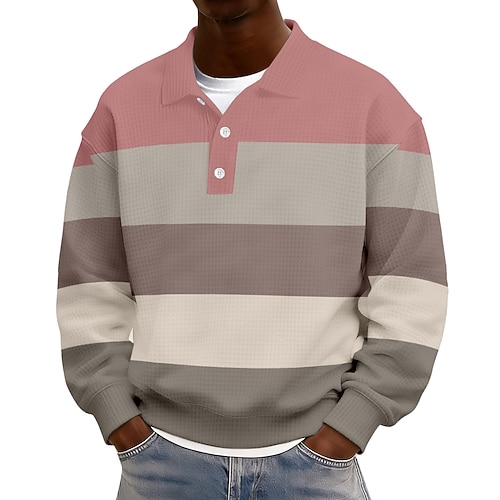 Per uomo Strisce orizzontali Magliette Polo a Nido d'Ape Polo da rugby Manica Lunga Magliette polo Bavero Abbigliamento Sportivo Casual Scuola Athleisure Abbigliamento quotidiano Stampa 3D Primavera