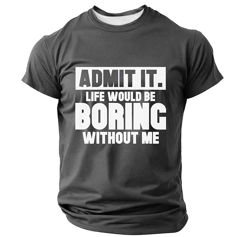 Admit It Life Would Be Boring Without Me Funny T Shirt Men Sarcastic Novelty Graphic Tees Summer Casual Short Sleeve Crew Neck Letter Print Top Gift For Him Clothing Apparel S M L XL XXL XXXL