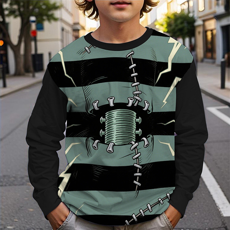 Halloween Boys' 3D Cartoon Stripe T shirt Tee Long Sleeve Spring Fall Fashion Basic Kids 4-12 Years Crew Neck Outdoor Casual Daily Regular Fit