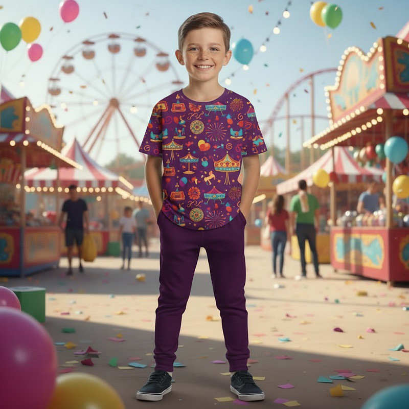 Carnival Unisex 3D Graphic Mardi Gras Pajamas Pajama Sets Tee Pants Pajama Sets Short Sleeve 3D Print Summer Active Neutral Fashion Kids 4 years Crew Neck Daily Home Causal Regular Fit