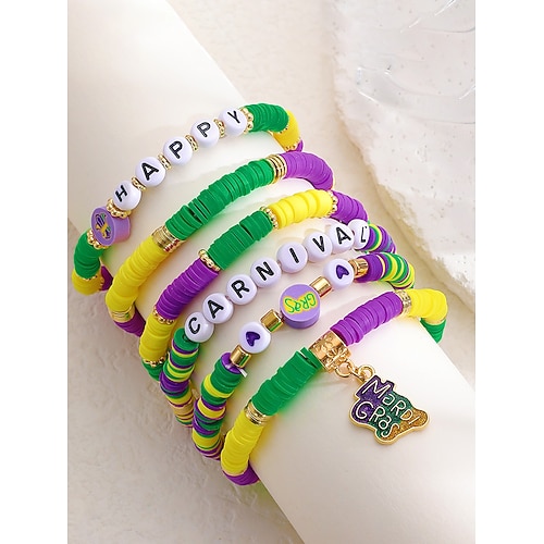 set di braccialetti in acrilico da donna, design multi-motivo, tema martedì grasso, perfetto per carnevale e festività