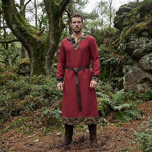 Medievale Rinascimento Elegante Tunica Cavaliere Vichingo Costume Per uomo Fantasia Reale Halloween Carnevale Mascherata Fiera Rinascimentale Festa a tema retrò Adulti Cappotto Cintura Tutte le