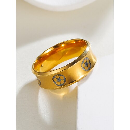 Anello da uomo in acciaio inossidabile con motivo a tema calcistico, fascia da tifoso multicolore e multi-taglia per il giorno della partita, il supporto allo stadio, l'abbigliamento casual e lo stile sportivo di tutti i giorni.