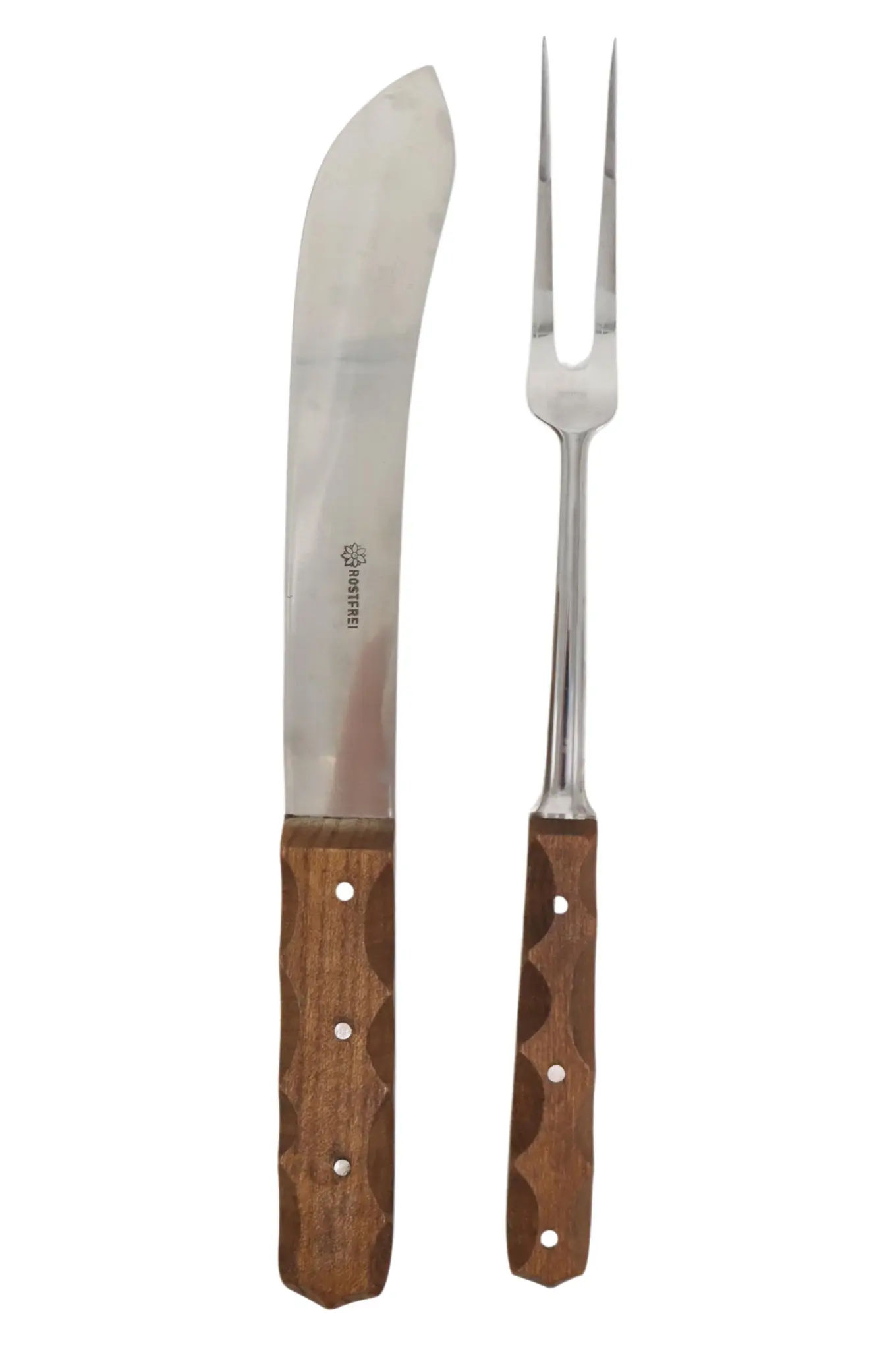 Tranchier Besteck Set Holzgriff Braun 2 Teile Vintage