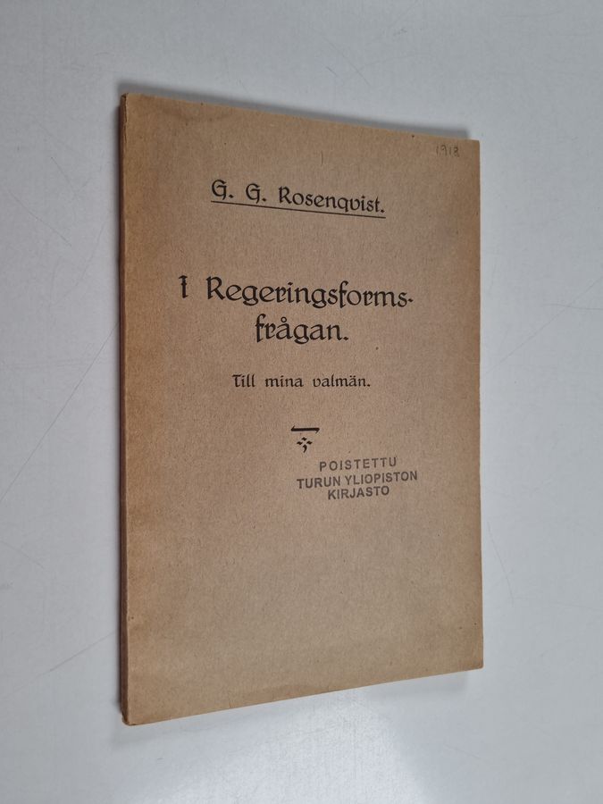 G. G. Rosenqvist : I regeringsformsfrågan : till mina valmän