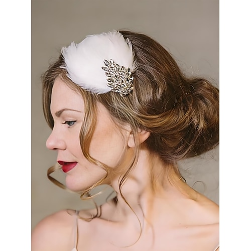 fermaglio per capelli con piume bianche da donna - copricapo vintage decorato con cristalli per signore, elegante fascinator in stile Gatsby per feste, cocktail e abiti da sera