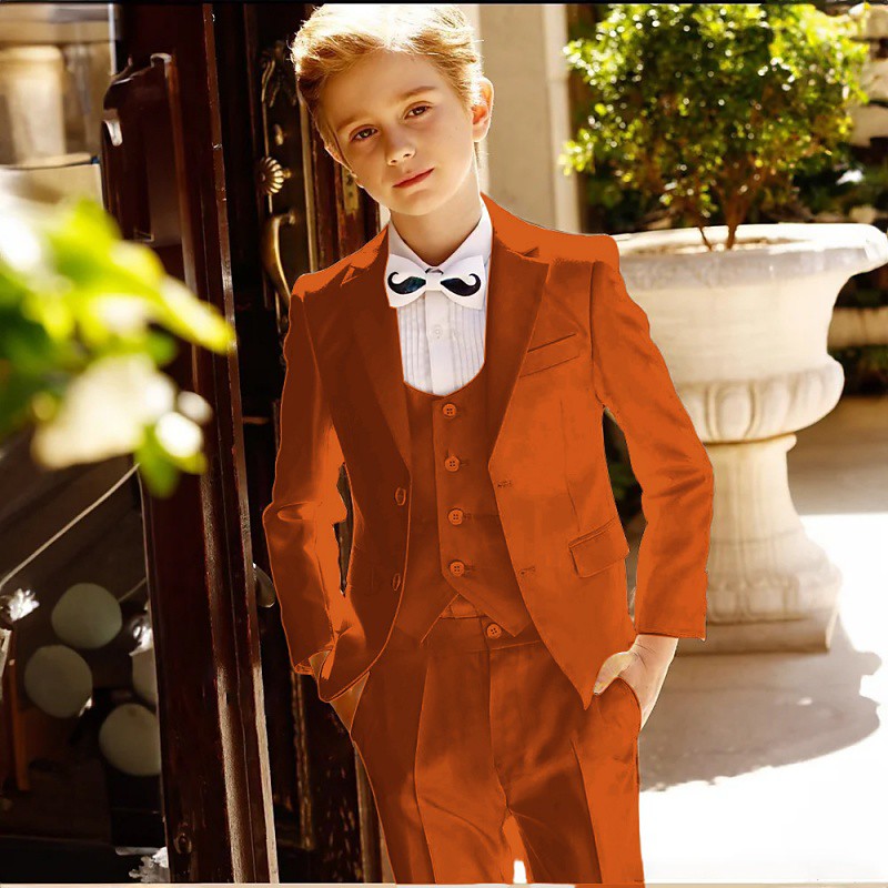 5 Pieces Ring Bearer Suit Boys Kids Suit Formal Suit Blazer Vest Pants Brooch Tie Formal Party Valentines Fashion Cool Solid Color Pocket Khaki Gray Polyester