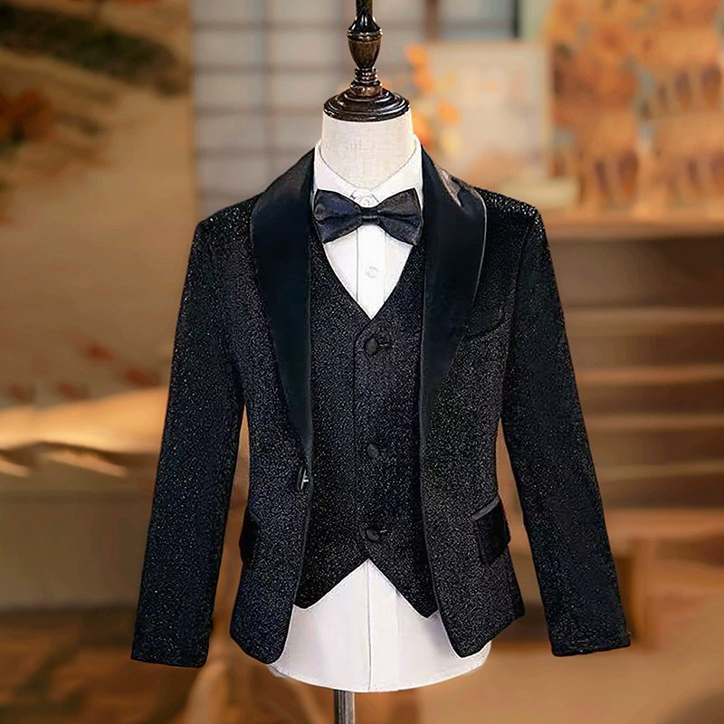 4 Pieces Ring Bearer Suit Boys' Kids Suit Blazer Vest Pants Tie Boy's Formal Suit Casual Outdoor Party Fashion Cool Basic Solid Color Sequins Pocket Buttons Blue Black White Polyester