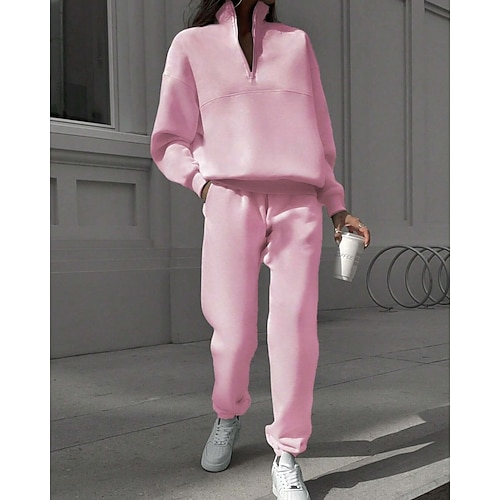 Per donna Moda Streetwear Set da due pezzi Tuta Set di Pantaloni Manica Lunga Collo alla coreana Tinta unica Coulisse Casuale Quotidiano All'aperto Nero Rosa Vino Autunno Vestibilità regolare