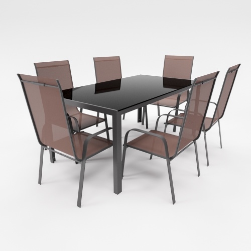 Lex Gartenmöbel Set Metall Tisch 6 Stapelsessel Essgruppe Gartenset Sitzgruppe Stuhl schokobraun : Schokobraun