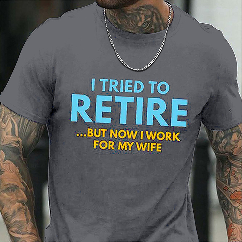 Mens Funny Retirement T-Shirt I Tried to Retire But Now I Work For My Wife Graphic Tee