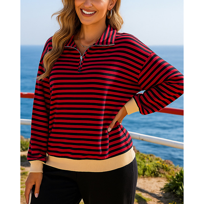 Women's Pullover Sweatshirt Casual Tops Quarter Zipper Fashion Long Sleeve Top Athleisure Fall Stripes Windproof Hiking Workout Running Sportswear Activewear Pink Red Blue